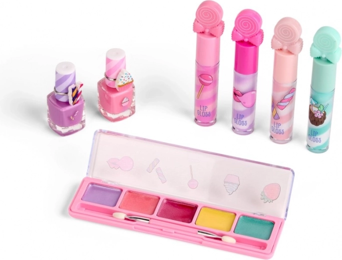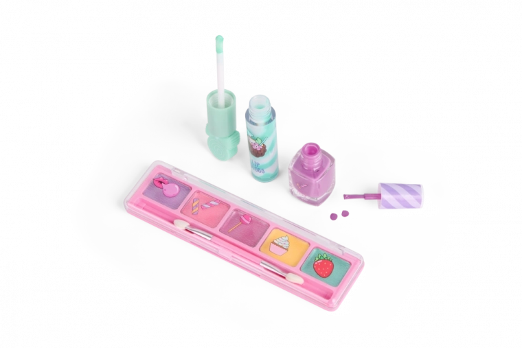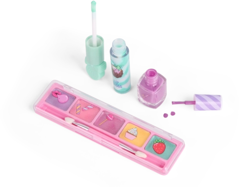 De set bevat vijf oogschaduws met applicator, vier lipglosses, twee nagellakken en twee ringetjes als stijlvolle accessoires. Perfect als cadeau, voor feestjes en voor dagelijks speelplezier.