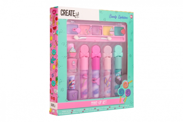 De Candy CREATE IT! make-upset brengt plezier en kleur in kinder-make-up. Alles is verpakt in een aantrekkelijke, door snoep geïnspireerde verpakking die kleine fashionista’s zal betoveren. Dankzij het kleurrijke palet aan tinten creëren kinderen eenvoudig subtiele of opvallendere looks en ontwikkelen ze hun creativiteit.