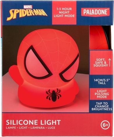 Ontdek zacht en veilig licht met het Spider-Man-motief. De siliconen behuizing van SquishyGlo is prettig in te drukken, wordt niet heet en is perfect voor de kinderkamer als nachtlampje of als relaxaccessoire voor volwassenen. De geïntegreerde oplaadbare batterij en de meegeleverde USB-kabel zorgen voor eenvoudig gebruik thuis en onderweg.