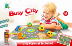De autootjes hebben een ideaal formaat voor grijptraining en liggen prettig in kleine handjes. Spelen op de mat met stadsmotief prikkelt de fantasie, het ruimtelijk inzicht en de oog-handcoördinatie. De set is een geweldige keuze voor samen spelen én zelfstandig ontdekken.