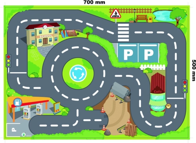 - Inhoud set: 5 autootjes + speelmat met stadsmotief
