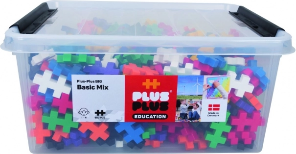 Praktische opbergbox met 600 grote PLUS-PLUS-stukken in basiskleuren biedt eindeloze bouwmogelijkheden voor jonge en oudere kinderen. Inclusief een boekje met opdrachten en instructies, de stukken zijn vrij van ftalaten, gemaakt van gerecycled plastic en eenvoudig te onderhouden. Gemaakt in Denemarken, ideaal voor kleuterscholen en groepen, geschikt vanaf 1 jaar.