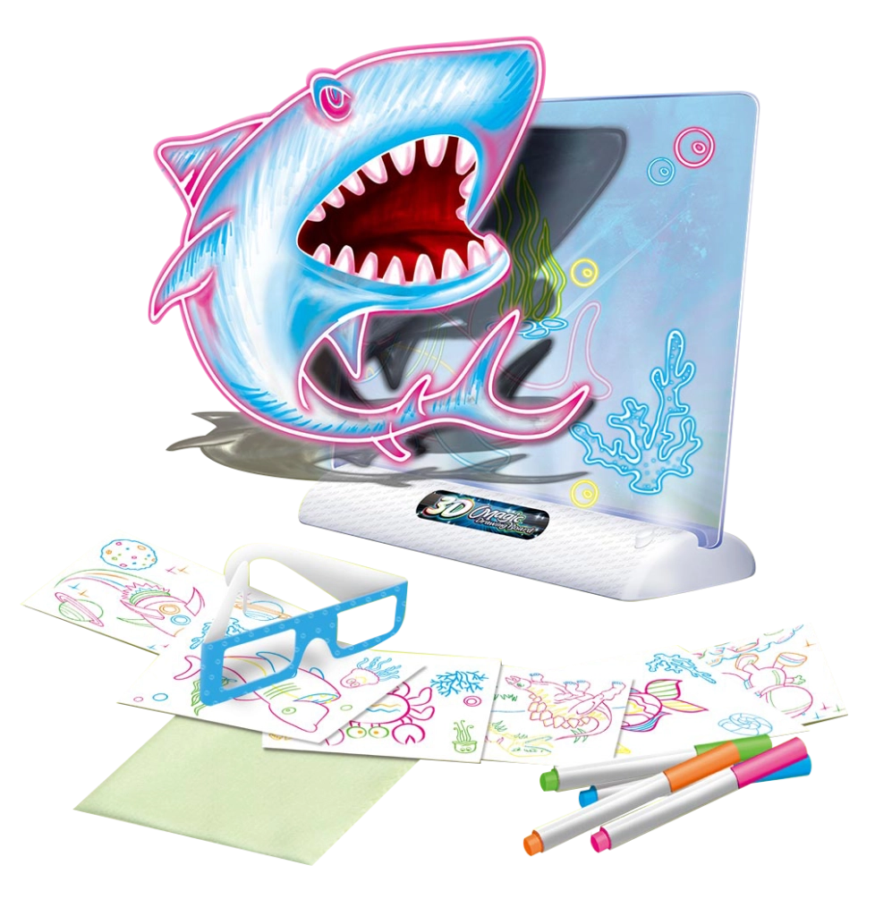 Duik in een wereld vol creativiteit met dit unieke tekenbord. Teken eenvoudig een afbeelding op het meegeleverde plaatje, plaats het in de houder en kijk hoe het verandert in een ruimtelijk meesterwerk!