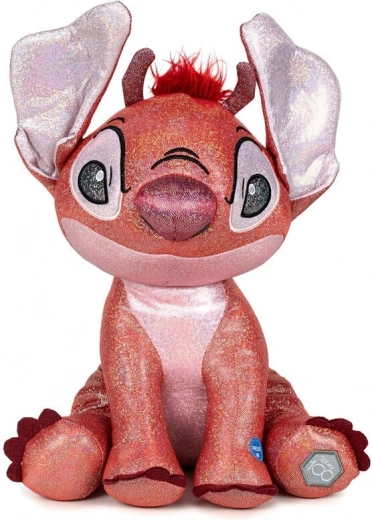 Interactieve pluchen Leroy uit de Disney 100 Anniversary-collectie met een glinsterende look en geluidseffecten. Het pluchen figuurtje Stitch zorgt voor leuke geluidseffecten wanneer je in het linkere armpje knijpt.