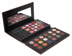Het Glam To Go make-uppalet is ideaal voor elke vrouw die al haar make-up overzichtelijk in een elegant etui wil hebben. Het bevat 18 oogschaduws, 12 crèmelipsticks en andere cosmetische benodigdheden.
