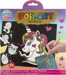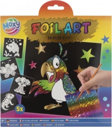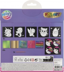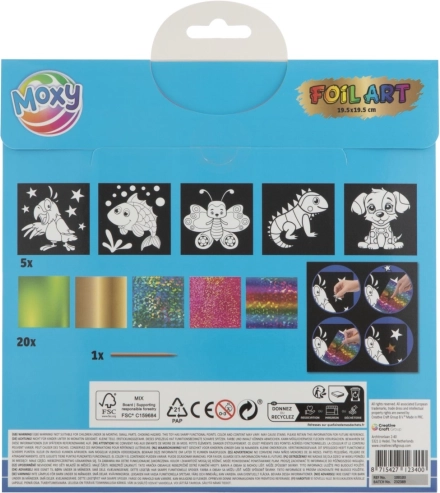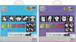 De set bevat vijf verschillende afbeeldingen met zelfklevende vlakken om naar eigen smaak te versieren. Kinderen kunnen gebruikmaken van 20 sprankelende folies met diverse motieven, die onbeperkte creativiteit mogelijk maken. Kies simpelweg een deel van de afbeelding, verwijder de beschermlaag en versier het kleefvlak met de gekozen folie.