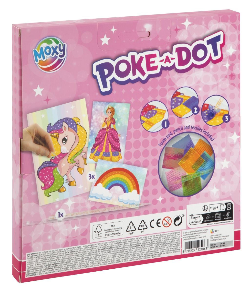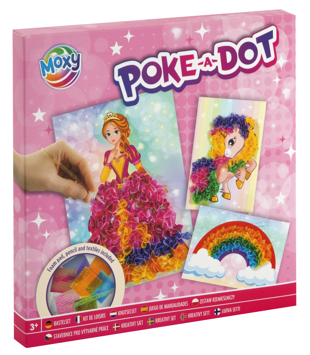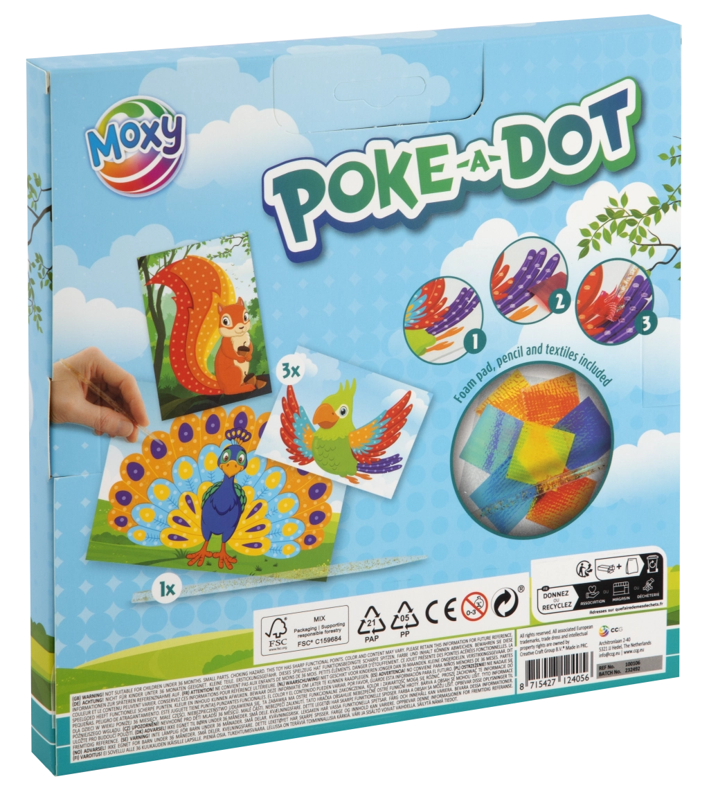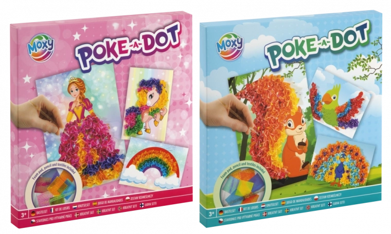 Met deze leuke creatieve set maken kinderen prachtige textielafbeeldingen zonder rommel. Gebruik de applicator om stukjes stof in de voorbereide groeven van de schuimondergrond te duwen en het motief komt stap voor stap tot leven met rijke kleuren en een getextureerd effect. Er zijn twee thematische varianten: eekhoorn, papegaai en pauw of eenhoorn, regenboog en prinses.