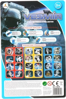 Ga op een avontuurlijke reis door de ruimte met deze slimme combinatie van zaklamp en projector! Projecteer 24 kleurrijke afbeeldingen van planeten, sterren en raketten, vertel verhalen over ontdekkingen en geniet van een magische lichtsfeer. Een geweldige speelset voor kleine astronauten en ruimtefans.