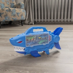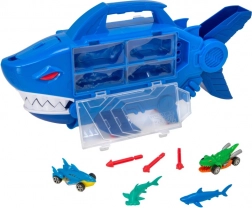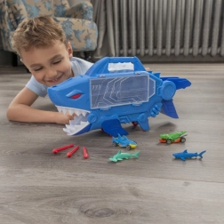 Laat een autootje over de interne ramp naar beneden glijden en kijk hoe het door de open bek van de haai schiet. Razendsnelle actie en eindeloos speelplezier.