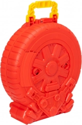 - Draagbare koffer in de vorm van een wiel, uitklapbare speelbaan, 1× autootje