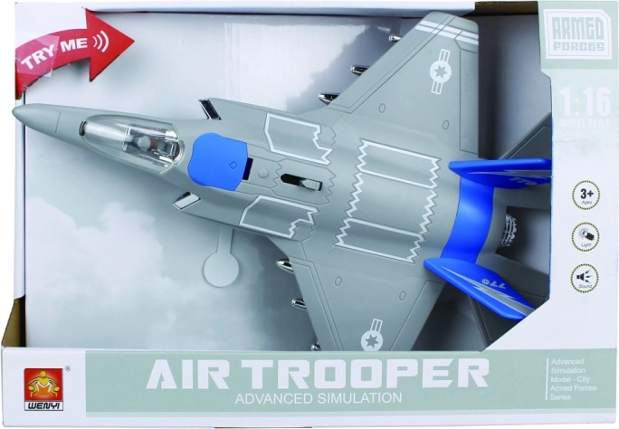 Beleef realistische spanning met dit gedetailleerde militaire vliegtuig op schaal 1:16, dat licht- en geluidseffecten biedt voor een authentieke ervaring.
