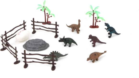 - dinosaurussen, planten en overige accessoires (bijv. boompjes, rots, omheining)