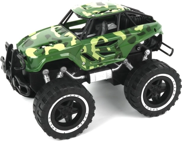 Geniet van actievolle races met een robuuste monstertruck in camouflage-design. Grote banden, een verhoogd chassis en stevige kunststof afwerking trotseren thuisbanen en speelse obstakels. De bediening is intuïtief – geef een duwtje en de auto rijdt weg.