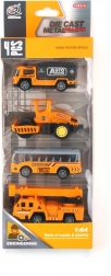 Deze set van metalen en plastic mini-voertuigen biedt kinderen eindeloze speelmogelijkheden. De realistische details van bouw- en bedrijfswagens komen tot hun recht bij elke race en bij het bouwen van een denkbeeldige stad. Het pull-back-mechanisme werkt betrouwbaar en is ideaal voor korte en lange banen op vloer of tafel.