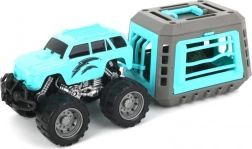 - Terreinwagen, aanhanger met kooi, dinosaurussenfiguur