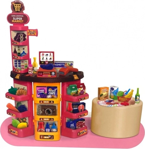 - Bevat een kassa, een winkelmandje en diverse soorten voedsel.