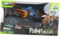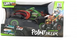 De haaien-RC-auto is een ideale keuze voor jonge racers die op zoek zijn naar actie en eenvoudige bediening. Het stabiele 2,4 GHz-signaal maakt gelijktijdig rijden met meerdere auto's mogelijk zonder storingen, het bereik van de controller is 40–50 m en de topsnelheid bedraagt tot 10 km/u. Een lichtindicator, hoofdschakelaar en sproeieffect (na aanvullen met water) tillen de rijervaring naar een hoger niveau.