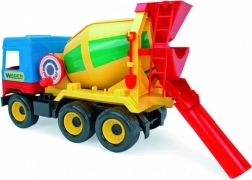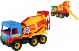 Het speelgoed is uitgerust met een beweegbare betonmolen en een functionele schuif voor creatief spel.