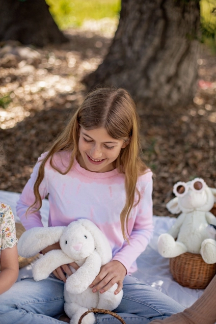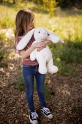 Gemaakt van zachte en aangename pluche, waardoor dit konijn ideaal is om te knuffelen.