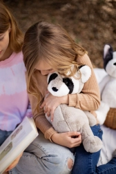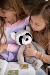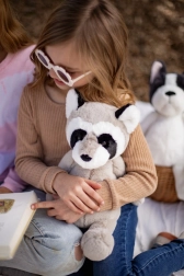 De pluchen wasbeer is vervaardigd uit een zachte en aangename stof, ideaal om mee te knuffelen.