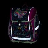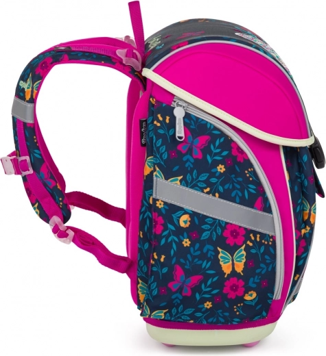 De premium light vlinder schoolsset combineert stijlvol design met focus op gezond dragen. De verlichte rugzak met ademende rugpadding, brede gewatteerde schouderbanden en borst- en compressiebanden verdeelt het gewicht gelijkmatig. Dankzij de reflecterende elementen is het kind beter zichtbaar, ook bij slechtere omstandigheden.
