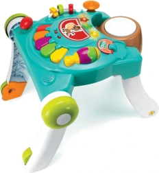 Dit muzikale entertainmentcentrum kan direct worden omgevormd tot een loopwagen, een muziektafel of een speelcentrum voor een kind dat zit of op de buik ligt.