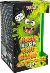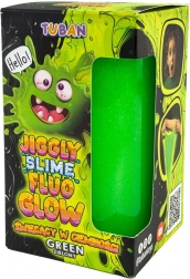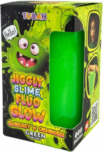 Leuk, veerkrachtig en lichtgevend – Jiggly Slime Fluo Glow van het merk Tuban brengt een intense groene kleur die in het donker gloeit. Dankzij de unieke formule trilt de slime als gelei en rekt als rubber, ideaal voor sensorisch spel, trucs en eindeloos knijpen.