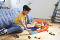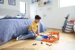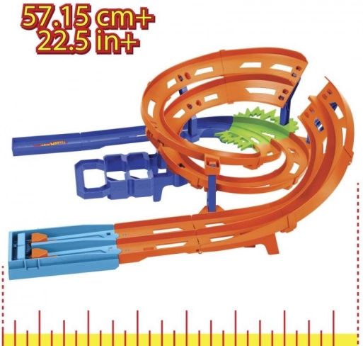 De baan draagt het legendarische Hot Wheels-logo en ondersteunt races op hoge snelheid en stunts voor kinderen vanaf 4 jaar.