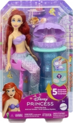 Ariel Schelp Kaptafel is een prachtige speelset geïnspireerd door de geliefde film "De Kleine Zeemeermin". Ariel, de modieuze Disney prinses pop, is klaar voor alle avonturen bij de schelp kaptafel, die vijf "parels" met verrassingen verbergt. Open de schelp kaptafel en binnenin vind je een "parel" met een verrassing! Haal de "parel" eruit om te ontdekken welke schat erin verborgen zit en een volgende parel springt tevoorschijn. De "parels" kunnen opnieuw in de kaptafel worden geplaatst voor herhaald ontdekken.