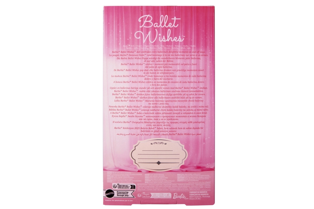 De Barbie prachtige ballerina is gemaakt voor elk groot podium. De zachte roze tutu met gelaagde rok, tiara en roze balletschoentjes met strikjes benadrukken de elegante uitstraling van de ballerina. Buigzame gewrichten in schouders, ellebogen, polsen, heupen en knieën zorgen voor realistische balletposities en vloeiende overgangen daartussen.