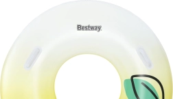 Geniet volop van de zomer met de opblaasbare BESTWAY-zwemring in een frisse citroendesign. Dankzij twee geïntegreerde handgrepen biedt hij een zekere grip en stabiliteit op het water, het duurzame PVC-materiaal zorgt voor een lange levensduur en de diameter van 114 cm biedt comfortabele ontspanning bij het zwembad en op het strand.