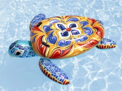 Ontdek de voordelen van deze kleurrijke opblaasbare schildpad met Majolika-patroon: