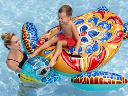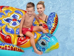 Het kleurrijke en aantrekkelijke design nodigt uit tot waterpret. De schildpad heeft levendige patronen in gele, blauwe en rode kleuren.