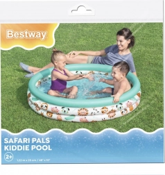 Het opblaasbare kinderzwembad Safari Dieren van het merk Bestway is gemaakt van hoogwaardig en duurzaam PVC, wat een lange levensduur en weerstand tegen beschadiging garandeert. Met drie opblaasbare ringen biedt het stabiliteit en comfort tijdens het spelen. Zachte wanden zorgen voor comfort en veiligheid tijdens het waterspel van uw kind.