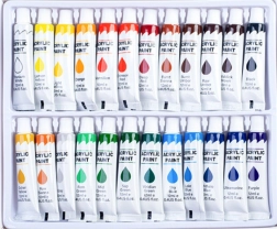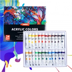 Complete set acrylverf voor hobby en atelier: 24 intense tinten in handige tubes van 12 ml. De verf is rijk gepigmenteerd, sneldrogend en hecht uitstekend op diverse ondergronden – van papier en doek tot hout, glas en metaal. Ideaal voor beginners en professionals, met tubes met schroefdop tegen uitdroging.