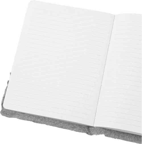 De grijze, aangenaam aanvoelende omslag met geborduurde details en oortjes geeft je notities charme en beschermt de binnenpagina’s.