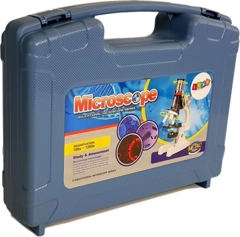 Ontdek de wereld van de microscopie met een draagbare set voor jonge onderzoekers. Deze kindermicroscoop in een praktische koffer biedt vergroting 100×/400×/1200×, fijnscherpstelling en verlichting met schakelaar. Ideaal voor eerste experimenten, het bekijken van bladeren, vezels of kant‑en‑klare preparaten – een leuke en educatieve speelgoedset voor kinderen vanaf 8 jaar.