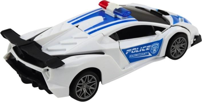 Deze stijlvolle politieauto in wit-blauwe uitvoering oogt als een echte radiowagen – met knipperende zwaailichten, sirenegeluiden en de mogelijkheid om tijdens het rijden de carrosserie te transformeren tot robot met opklappende grille. Na de missie verandert hij weer terug in een auto, zodat kinderen soepel kunnen schakelen tussen twee speelmodi.