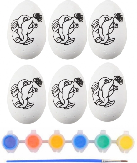 - Complete set: 6 eieren, 6 kleuren, penseel