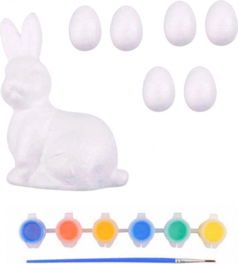 - 6 polystyreen eieren, 1 konijntjesfiguur, 6 kleuren, 1 penseel