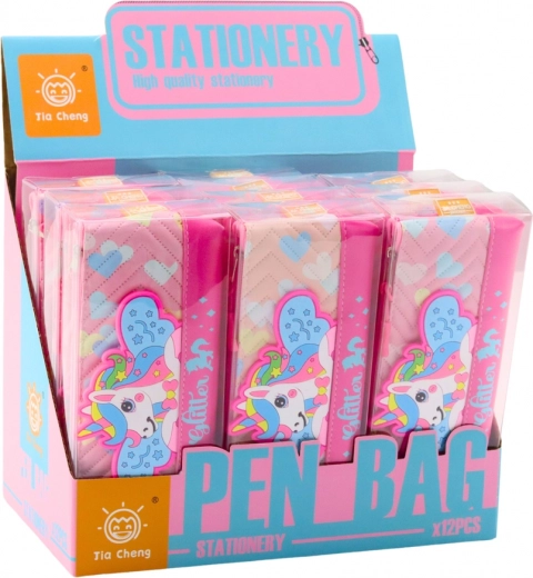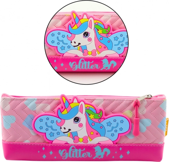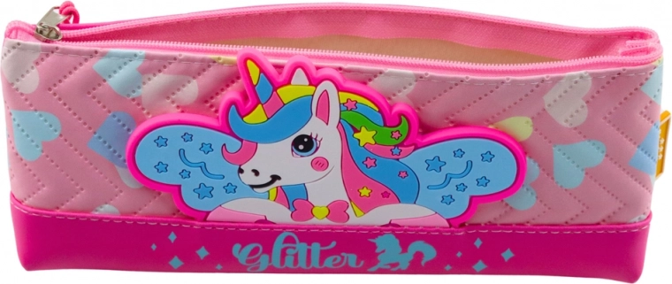Roze etui met eenhoornontwerp is een geweldige keuze voor elk meisje dat van magische wezens houdt! Deze betoverende en functionele schoolbenodigdheid verrijkt elke schooldag.