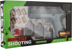 In de set vind je een pistool, kogels en doelwitten, alles wat je nodig hebt voor een spannende schiettraining.