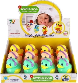 Schattig plastic eendje opwindbaar, dat kinderen vermaakt, het huppelt en amuseert na opwinden. Ideaal om thuis of in bad te spelen.