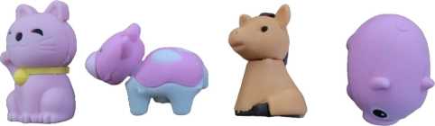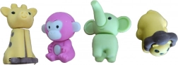 Giraffe, aapje, olifant en leeuw in vrolijke kleuren. Kinderen zullen de schattige vormen en het schone gummen zonder vegen geweldig vinden – ideaal voor dagelijks gebruik.
