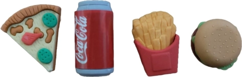 Pizza, hamburger, frietjes en een colablikje – speelse vormen maken schoolwerk leuker en gummen tegelijk schoon. Een geweldige keuze voor kleine fijnproevers met fantasie.