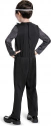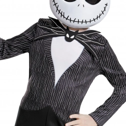 Dit kinderkostuum van Jack Skellington tovert elke jonge fan om tot de koning van Halloween Town. De hoogwaardige zwarte jumpsuit met witte strepen imiteert Jacks elegante pak, de iconische vleermuis-strik geeft karakter en het masker met genaaide glimlach maakt de look compleet.