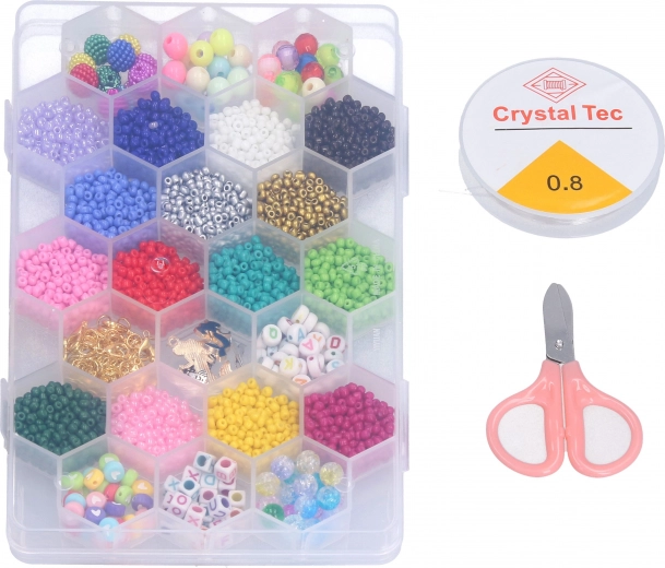 Met deze kralenset kun je je creativiteit uiten en unieke sieraden of decoraties maken. De set bevat alles wat je voor je projecten nodig hebt: