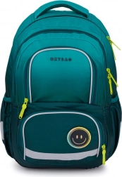 De schoolrugzak Oxybag OXY NEXT Stickers in modern turquoise met contrasterende ritsen en een stijlvolle patch met een lachende smiley zal zowel kinderen als ouders aanspreken. Ontworpen voor comfortabel dagelijks gebruik – met een anatomisch gevormde rug, gevoerde schouderbanden en een borstriem voor stabiele pasvorm op de rug.