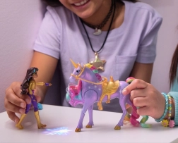 Stap in de magische wereld van de Eenhoornacademie met Sophia en haar eenhoorn Wildstar. Deze set, geïnspireerd door de Netflix-serie en bestseller boekenreeks over vriendschap, biedt kinderen de kans om de speciale band tussen ruiter en eenhoorn te ervaren.