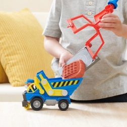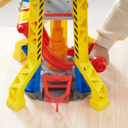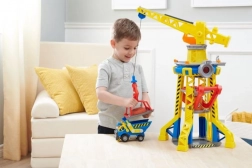 Zet Rubble in de lift en breng hem naar de top van de toren naar de besturingscabine van de kraan. Gebruik de kraan om blokken op te tillen en op de juiste plek te plaatsen. Druk voor extra verrassingen op de grote rode knop op de toren om de lichten aan te zetten en naar de geluiden uit de serie te luisteren. Zoek voor meer plezier naar extra bouwtrucks en figuren uit de Rubble & Crew-serie.